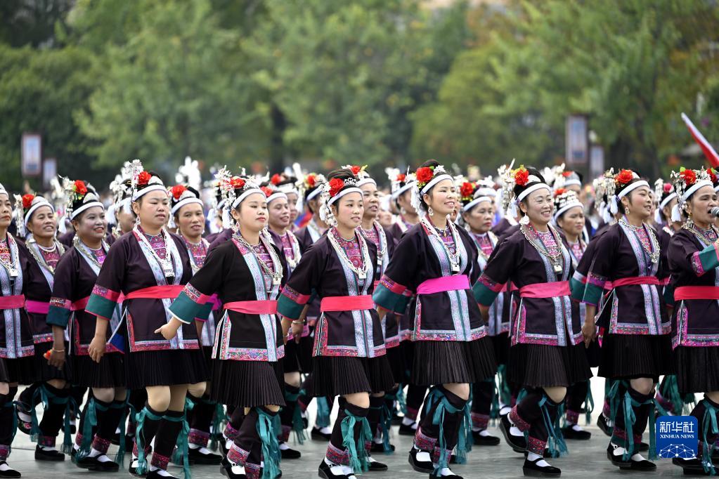 11月5日,在广西柳州市三江侗族自治县多耶广场,侗族群众参加多耶比赛。