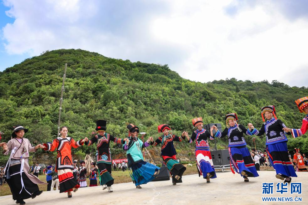 8月10日,村民在节庆活动中跳彝族传统舞蹈。