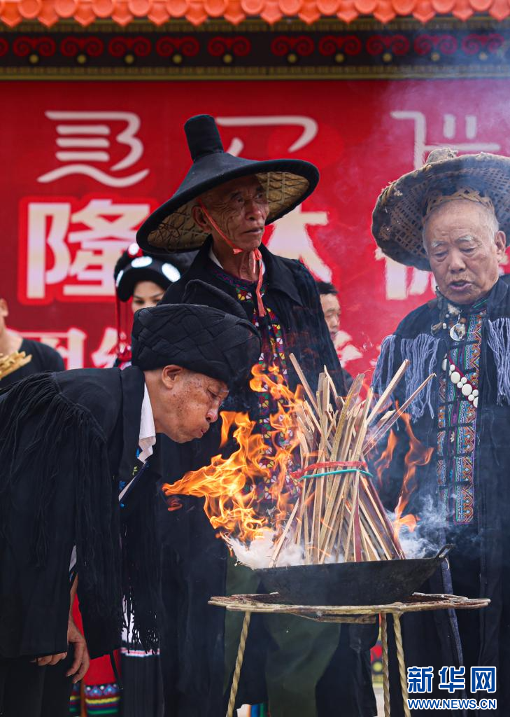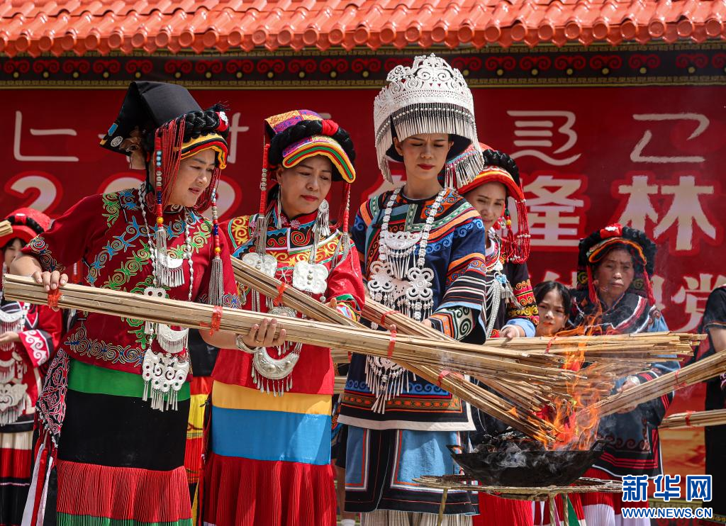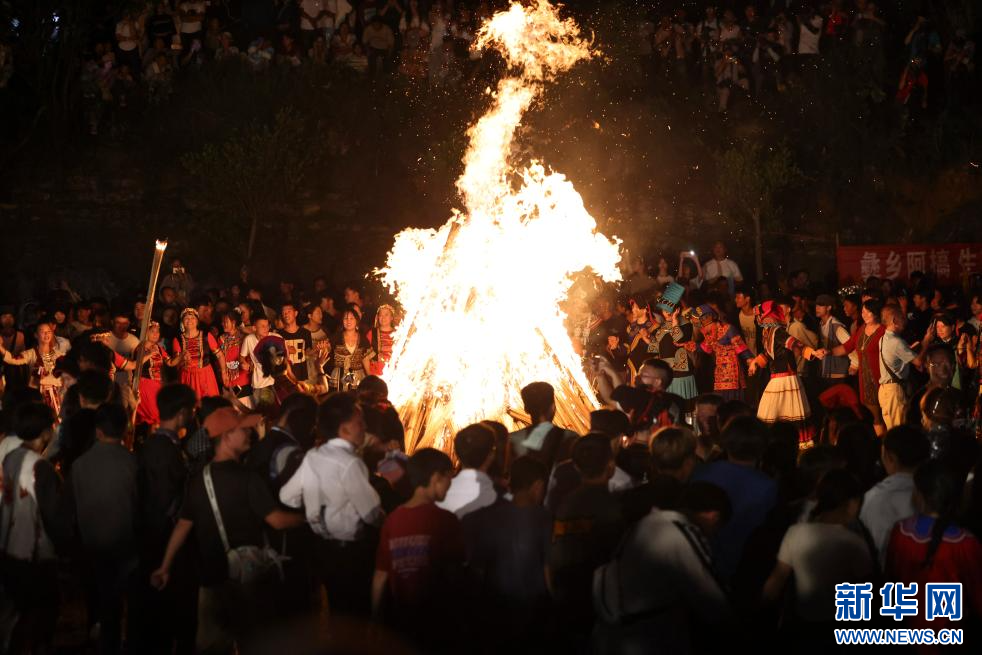 当日是彝族传统节日火把节,广西百色市隆林各族自治县德峨镇阿搞屯的村民在取火祭火、祭送布谷鸟、打磨秋、抹黑脸、篝火晚会等民族特色活动中欢庆节日、传递祝福。