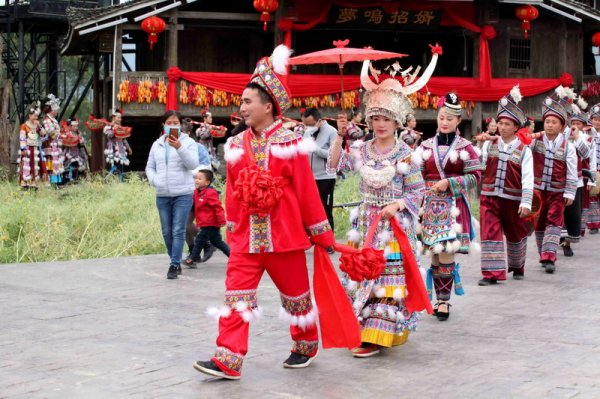 4月1日,柳州市融水苗族自治县梦呜苗寨,苗族青年在表演迎亲现场。 4月1日,融水苗族自治县梦呜苗寨,苗族青年在表演拉鼓。 4月1日,融水苗族自治县梦呜苗寨,苗族女青年在表演迎亲。 4月1日,融水苗族自治县梦呜苗寨,苗族青年在表演迎亲上的祭祀。 4月1日,融水苗族自治县梦呜苗寨,苗族青年在...