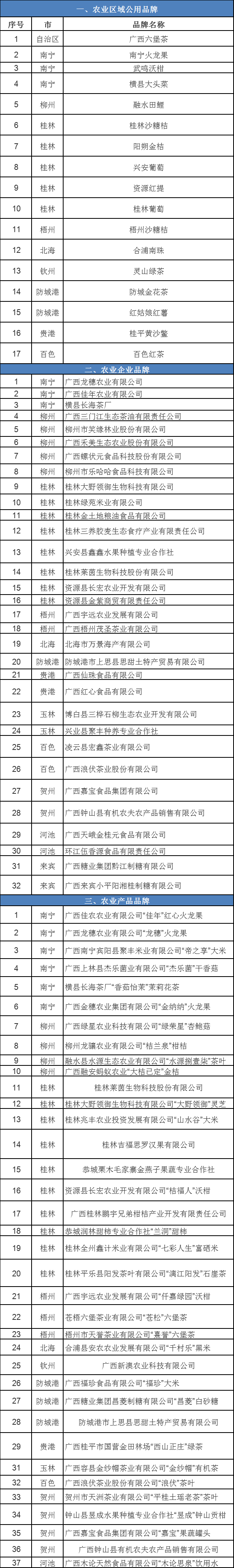第三批广西农业品牌(“广西好嘢“)目录推荐名单