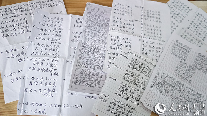 江南沙井平话文化艺术团成员以新时代为题创作的平话山歌手稿。于思琪摄