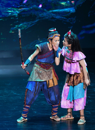 人民网南宁7月7日电 (朱晓玲)作为第十一届广西剧展的参演剧目之一,7月7日晚,由广西大学创排的音乐剧《花山奇缘》在广西大学菊隐剧场精彩上演。