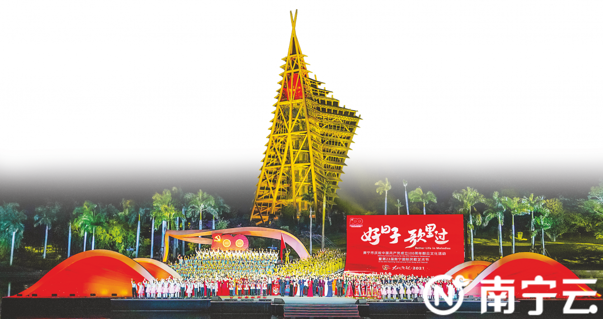 南宁市庆祝中国共产党成立100周年群众文化活动暨第23届南宁国际民歌艺术节“大地飞歌·2021“近日通过电视、广播、网络等平台精彩呈现。本届南宁国际民歌艺术节以“好日子 歌里过“为主题,唱响“让壮乡人民好日子千人唱万人和,天天放在歌里过“的美好旋律。本届南宁国际民歌艺术节坚持以习近平新时代中国特色社会主义思想为指导,学习宣传贯彻党的十九届六中全会精神,习近平总书记关于文艺工作的重要论述,习近平总书记对广西工作系列重要指示精神特别是“4·27“重要讲话精神,习近平总书记在中国文学艺术界联合会第十一次全国代表大会、中国作家协会第十次全国代表大会开幕式上的重要讲话精神,自治区第十二次党代会精神,市第十三次党代会精神,为深入推进强首府战略,奋力建设新时代中国特色社会主义壮美广西首善之地凝聚力量,以优异成绩迎接党的二十大胜利召开。
