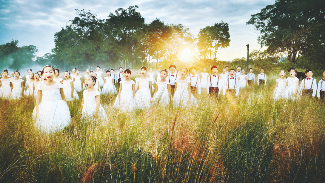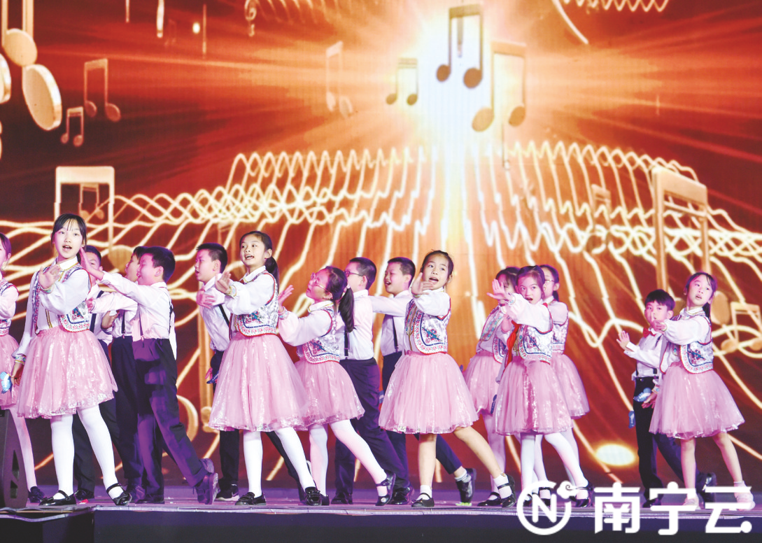 小演员在南宁园博园芦草叠塘演唱《蓝色多瑙河》。(市宣供图)