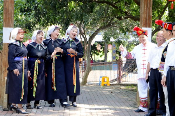 在大新县“新屯农家乐旅游”景区,大新县山歌手在参加分组山歌对唱活动中。当天是国庆长假的最后一天,该县近百名高腔诗蕾山歌手欢聚在一起,以分组对唱山歌的形式,用最甜美的歌声庆祝祖国72华诞。...