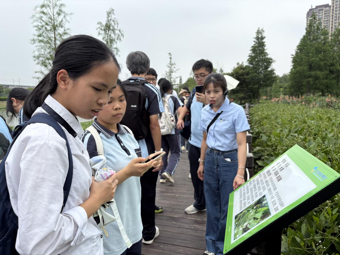 师生们表示,本次活动的主要知识收获有五个方面:一是同学们深刻领会湿地公园中海绵城市建设“渗、滞、蓄、净、用、排”六字方针的具体体现,加深对自然界水循环的理解;二是净水梯田的景观认识,通过多层植物过滤(如芦苇、美人蕉)净化水体,利用地形实现雨水滞留与渗透,体现“渗、滞、蓄、净”海绵技术;三是不同下垫面的透水功能实验;四是水生美人蕉群落根系吸附污染物,配合地下管道系统形成生物净化链,既具景观价值又实现水质净化;五是亲水步道沿湿地布局,可观察鸟类(白鹭、翠鸟)、水生生物(鱼类、底栖动物),感受人水和谐生态系统场景。(石山忠/文/图)