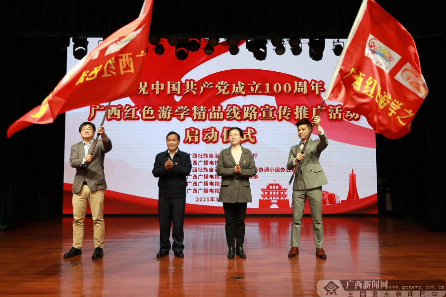 广西新闻网南宁3月4日讯(记者 黄玲娜)3月4日,庆祝中国共产党成立100周年广西红色游学精品线路宣传推广活动启动仪式在广西广播电视台举行,活动推介了10条红色游学精品线路,由此拉开全区文旅行业2021年庆祝中国共产党成立100周年活动序幕。