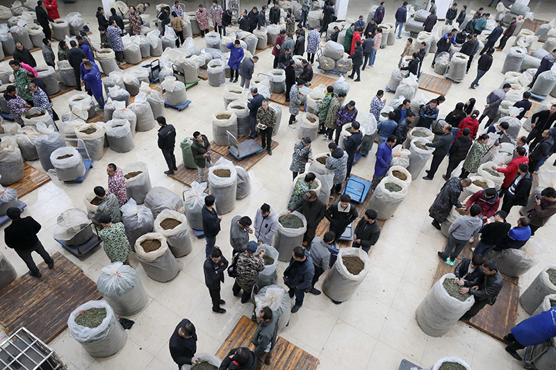 春分时节,广西三江侗族自治县的春茶进入盛产期,在三江茶城,茶商们正忙着销售干茶,春茶市场持续火热。