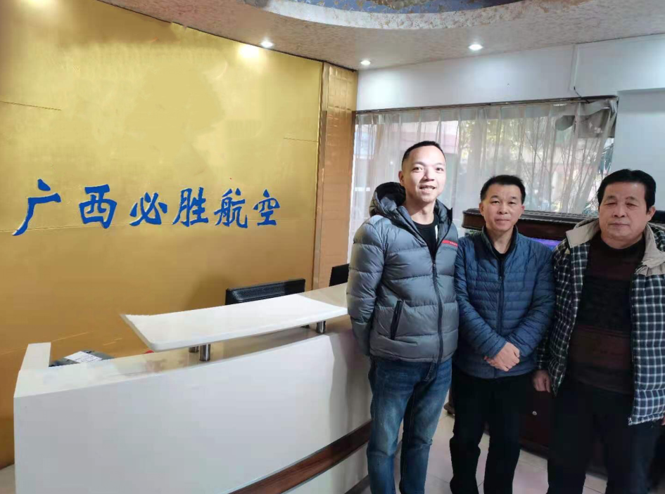 广西必胜航空科技有限公司相关负责人与“中华未来之星“系列活动全国组委会副秘书长吴桂中(中)在一起