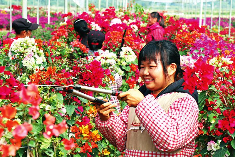 “若不来这里做工,我家恐怕至今还未能脱贫!“在上林县巷贤镇光全村邦光庄的福人湖三角梅培育基地里,杨丽玲一边工作一边满怀喜悦地说。杨丽玲是邦光庄人,尽管丈夫身体不好,但依靠在基地务工每月所得的约3500元工资,她得以挑起供3个孩子上学及照顾丈夫的重任,并于2017年底实现脱贫。如今她已成长为基地的栽花能手,并当上基地的生产队长。
