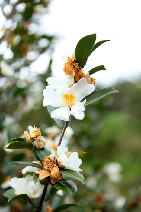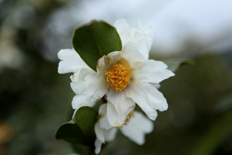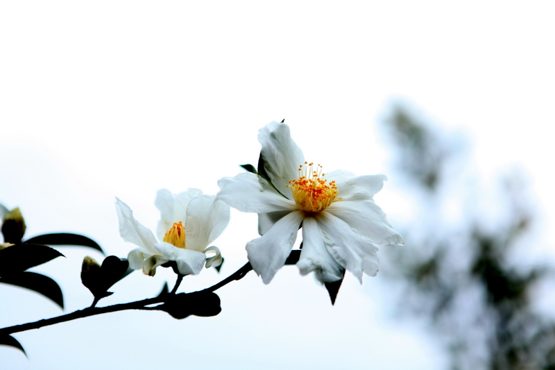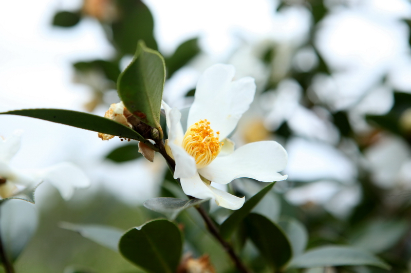 12月3日,在柳州市融水苗族自治县融水镇东良村陆村屯,拍摄到的盛开茶花。