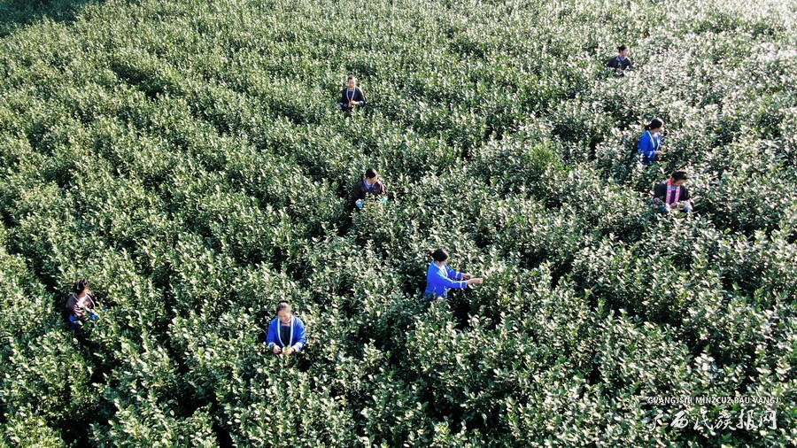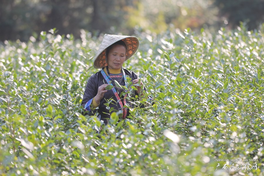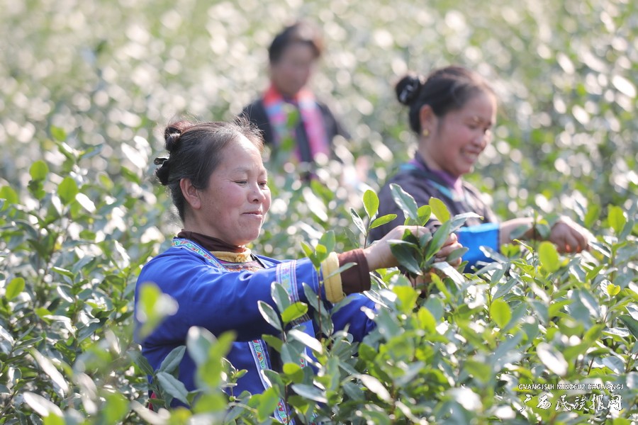 1月19日,大寒将至,天气回暖,三江侗族自治县梅林乡车寨村平寨屯茶园基地初露茶尖,村民们纷纷到茶园开采新茶,祈盼新年有个好收成。近年来,三江着力念好茶叶经,倾力打造“三江早春茶—敢为天下先“品牌,2020年,全县茶园总面积突破20万亩,干茶产量1.55万吨、产值16.80亿元,并荣获全国“2020年度茶业生态建设十强县““2020年度茶业百强县“等荣誉称号,茶叶产业已成为侗乡群众脱贫致富的“绿色银行“。(通讯员 龚普康)