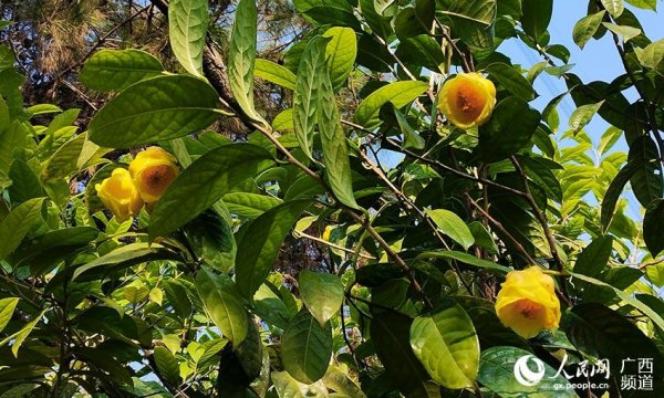 人民网上思1月28日电 近日,广西上思县那琴乡龙楼村的金花茶种植园里,金花茶树开花了。金黄色的花朵显得分外诱人,成为乡间冬日里一道别样的风景线。...