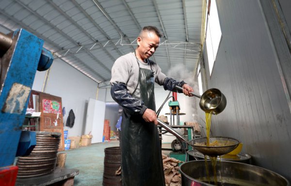 人民网三江12月3日电 初冬时节,侗乡三江陆续进入榨油黄金季,在广西三江侗族自治县独峒镇林略村,村村寨寨油香满寨。再该村一家微车间内,村民们正在利用新技术榨制茶油。近年来,三...