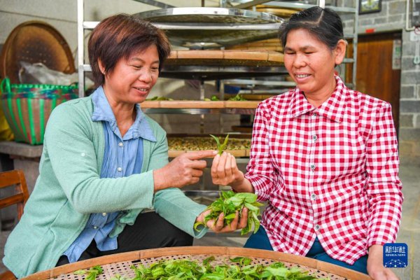12月10日,卢花暖(左)为本村茶农讲解茶叶的筛选标准。 12月10日,卢花暖冲泡自己制作的红茶(拼版照片)。 12月10日,卢花暖(左一)和其他茶农一起包装待售成品茶。 12月10日,卢花暖(左)和同伴一起直播卖茶。 12月10日,在蓬塘村白雪塘党支部党员大会上,卢花暖(站立者)在发言。 12月10日,卢花暖(右)和茶农...