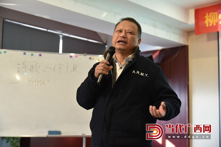 广西音乐家协会常务副主席、广西散文协会会长何述强在授课中。记者 覃冰 摄