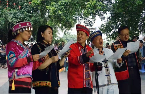桂林市医保局党总支改革创新志愿服务队用山歌唱出医保好政策。桂林市医疗保障局供图