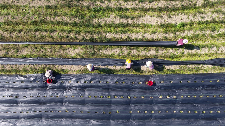 12月,暖阳和煦,村民劳作热情不减,在那漏村的中药材种植基地,来自那漏村及周边村的村民正抢抓晴好天气有序栽种百部种苗,耐心铺设防草膜。经过辛勤耕耘,青葱绿意星罗棋布地点缀在乡土画卷上,茁壮生长的百部孕育着丰收希望。