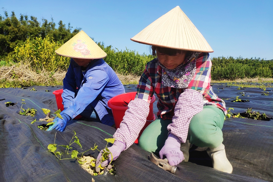 连日来,在广西东兴市江平镇那漏村,朝耕暮耘的冬种图景徐徐展开,56亩中药材种植基地渐次冒出新绿。那漏村因势利导带动企业盘活本村闲置土地,广泛种植中药材百部,探索乡村振兴的致富良方。