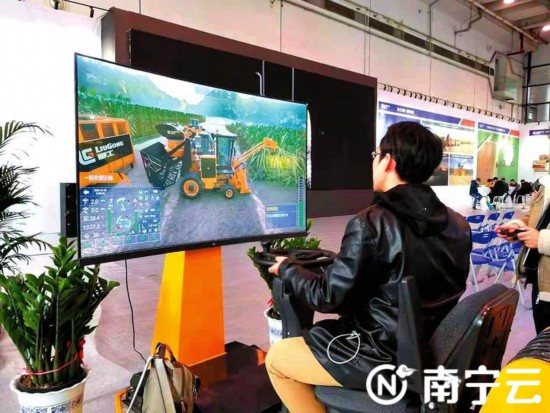 市民在模拟驾驶平台体验“收甘蔗“ 。见习记者 禤智君 摄