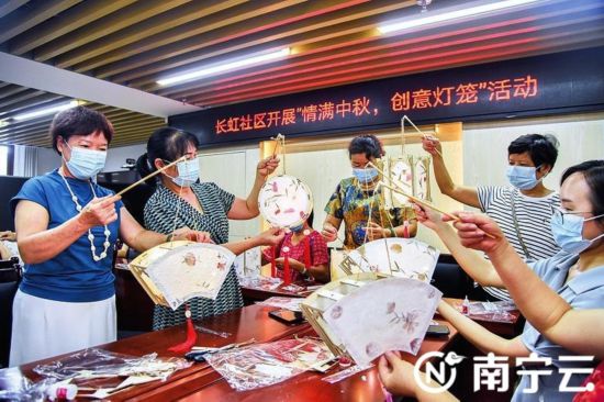 近日,在“情满中秋,创意灯笼“活动中,青秀区建政街道长虹社区居民齐聚一堂,制作各式灯笼喜迎中秋佳节。记者黄红锦摄