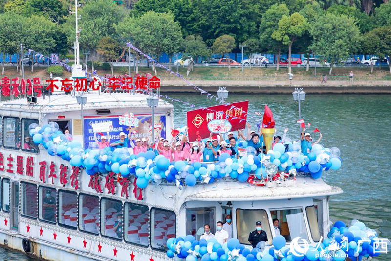 开幕式巡游船艇编队在柳江上航行。人民网 吴明江摄