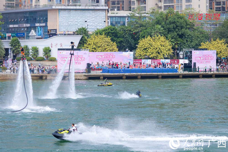 人民网柳州9月30日电 (吴明江)9月30日上午11时,2021中国柳州国际水上狂欢节暨水上休闲运动会开幕式在金沙角水域及亲水平台举行。