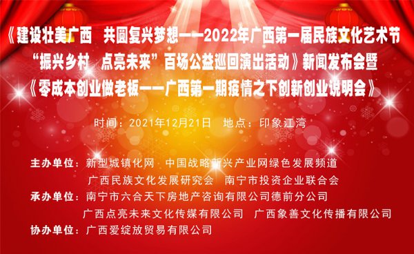 12月21日上午,由新型城镇化网、中国战略新兴产业网绿色发展频道、广西民族文化发展研究会主办,广西点亮未来文化传媒有限公司、新领航地产德前分公司、广西象善文化传播有限公司承办...