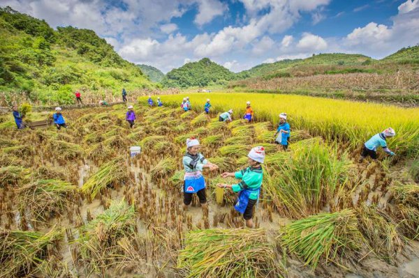 村民们在稻田间忙碌着。李世华摄村民们在稻田间忙碌着。李世华摄 农民驾驶农机在田间忙碌收割水稻。李世华摄 群众扛稻谷回家。李世华摄 收割。李世华摄 装袋。李世华摄 群众忙着搬运装...